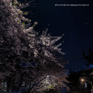 어느 날은, 늦은 밤의 벚꽃이 틀어올린 옷깃 매무새에 한켠 자리를 잡을 때, 당신은 나에게 여러 이야기를 한껏 품으며 다가와 재잘재잘- 웃음지었죠.