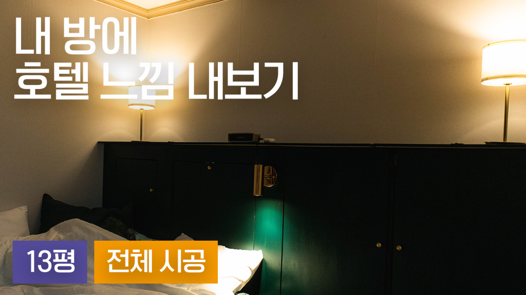 1평 방 포인트 시공 컨셉 Previous slide Next slide 과정 영상 Copyright 2022. 다재무능 이내 All rights reserved. All pictures cannot be copied without permission.